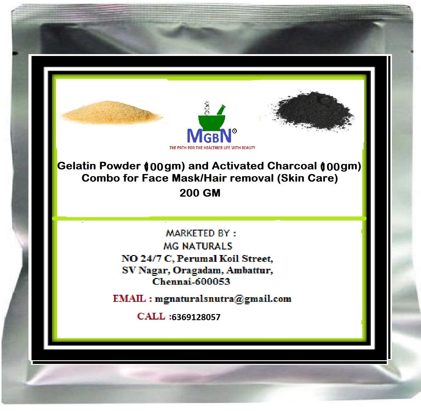 *Both activated charcoal and Gelatin are 100 % Natural Fine Powders*Ideal For Face Masks,Skin Care,Exfoliation and Brightening*Clean the Pores of Face,Skin and Body removes the whiteheads & blackheads*Pull the unwanted Excess Oils from your Skin*It helps pull the Dirt out of your Pores,making them less Visible.This makes it great for even Sensitive Skins.