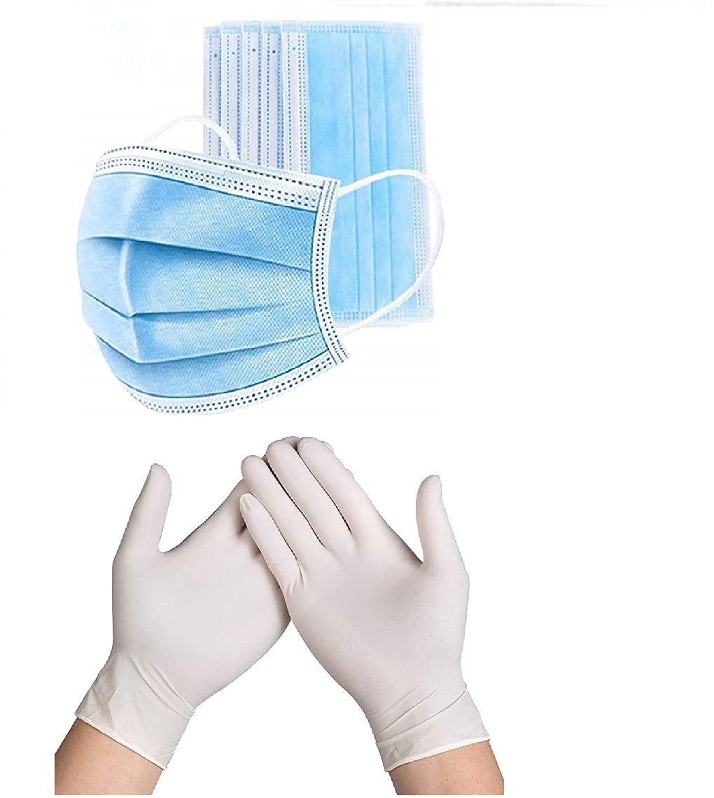 white disposable Examination gloves, enough to meet your basic needs Offer protection against contamination, dirt and potential irritants in low risk situations Natural latex for extreme comfort, non-sterile durability, powder-free, chemical resistant Designed to fit both left and right hands 5 Layer Mask with Filtration :Laminated activated carbon granule filer.