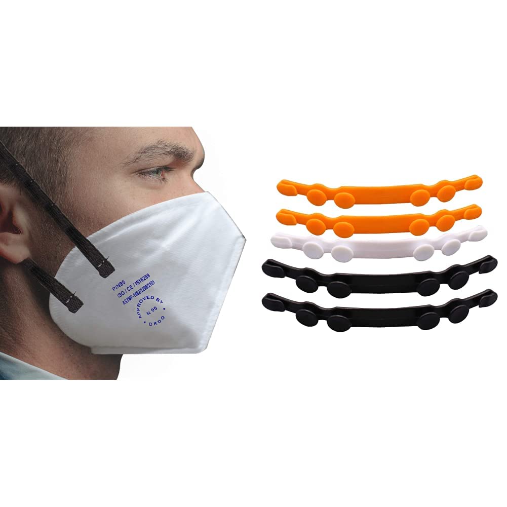 AllExtreme PI-N95 DRDO Approved Face Mask (10 PCS) With 5 PCS Adjustable Mask Strap Extender Hook