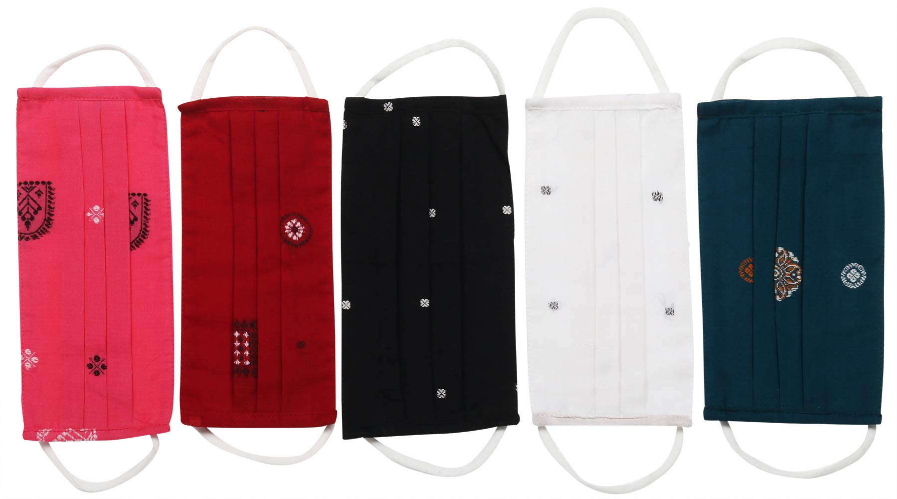 Lot of Five Two-ply Fashion Face Masks from Bangalore with Woven Motives and Cotton-Backing