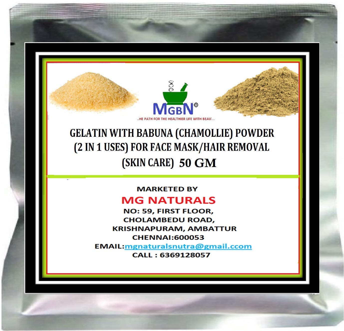 *Both GELATIN AND BABUNA POWDER are 100 % Natural Fine Powders*Ideal For Face Masks, Skin Care, Exfoliation and Brightening*Clean the Pores of Face, Skin and Body removes the whiteheads & blackheads*Pull the unwanted Excess Oils from your Skin*It helps pull the Dirt out of your Pores, making them less Visible. This makes it great for even Sensitive Skins. *Gelatin is a universal remedy for skin care. It perfectly cleanses, tones, nourishes, whitens and rejuvenates the skin.