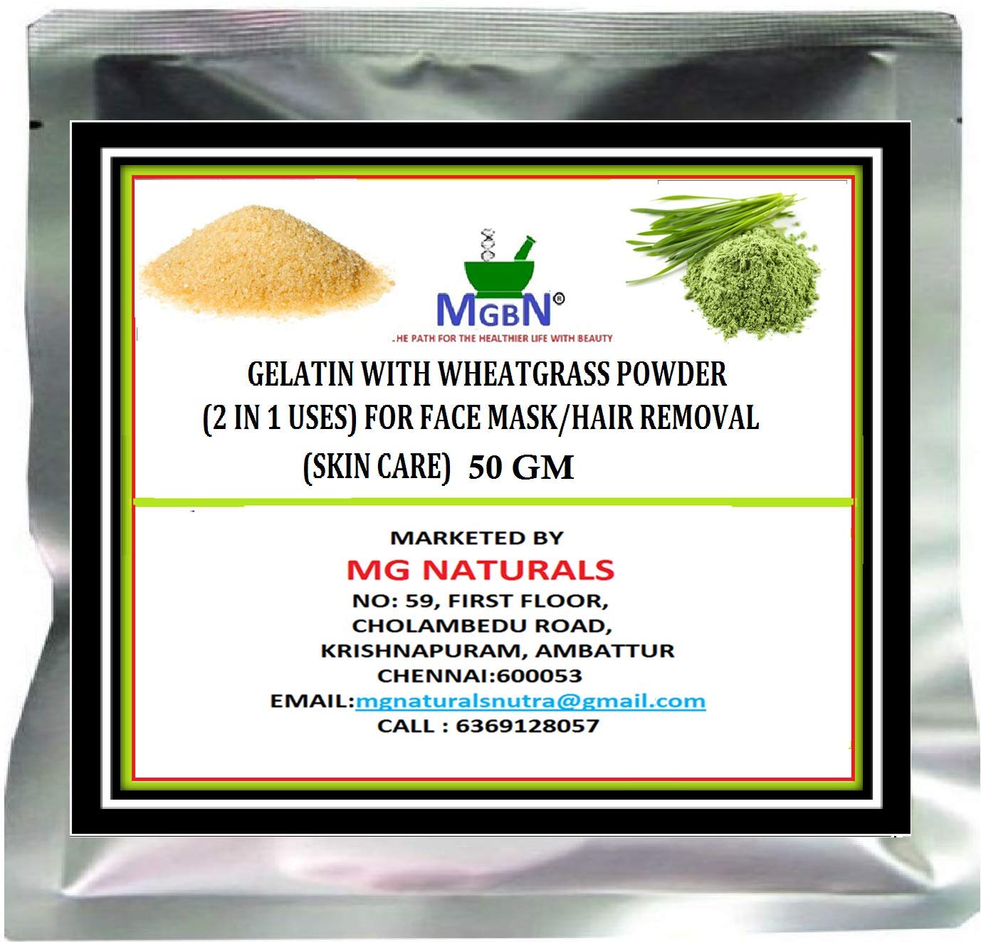 *Both GELATIN AND WHEATGRASS POWDER are 100 % Natural Fine Powders*Ideal For Face Masks, Skin Care, Exfoliation and Brightening*Clean the Pores of Face, Skin and Body removes the whiteheads & blackheads*Pull the unwanted Excess Oils from your Skin*It helps pull the Dirt out of your Pores, making them less Visible. This makes it great for even Sensitive Skins.