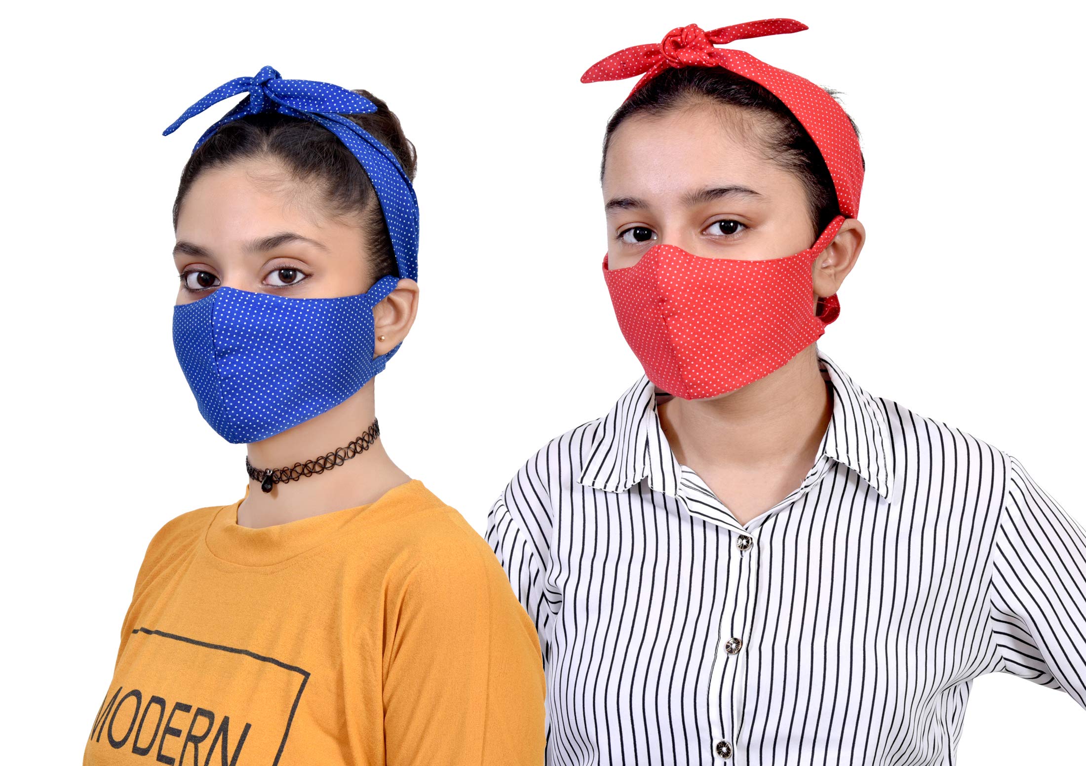 Tolexo branded cotton satin hairband cum mask pack of 2 , one is Blue and second is Red