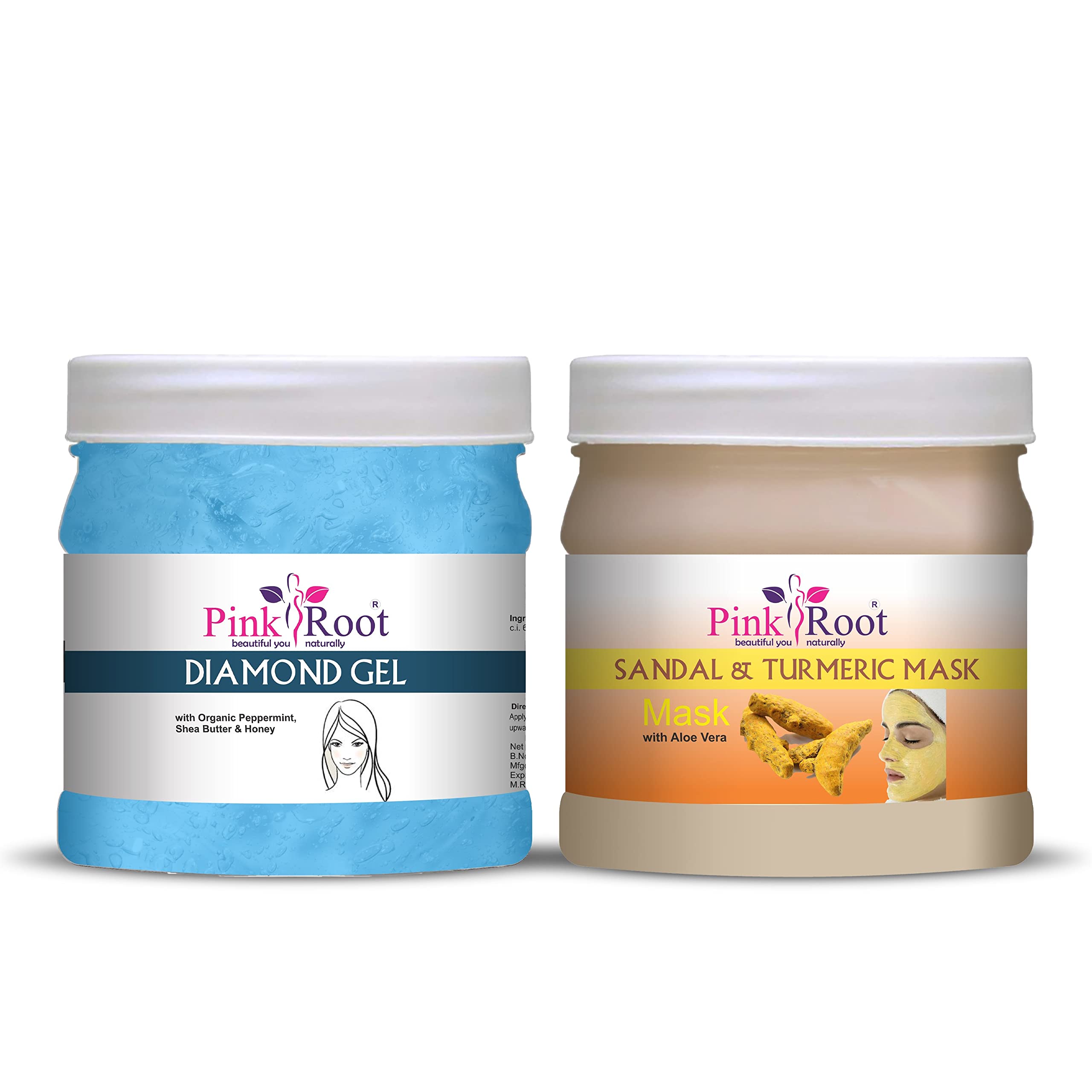 Package: Pink Root Diamond Gel 500gm with Sandal Turmeric Mask 500gm