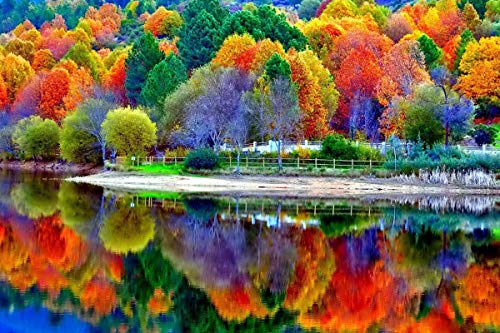 Buy Yellow Alley Colorful Trees With Lake View Nature Poster For Hostels, Offices Decoration|1Pc Online at Lowest Price Ever in UAE | Check Reviews & Ratings - Shop The World
