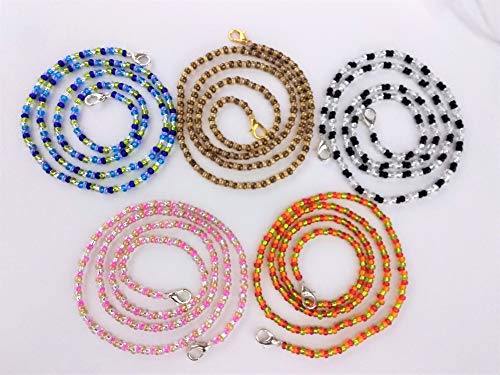 Meshwo Mask Lanyard Strap Set Of 5 Bead Face Mask Lanyard 0.8mm Bead Eyeglass Mask Chain Strap Mask Holders Chains Size:22Inch (Multi Color)