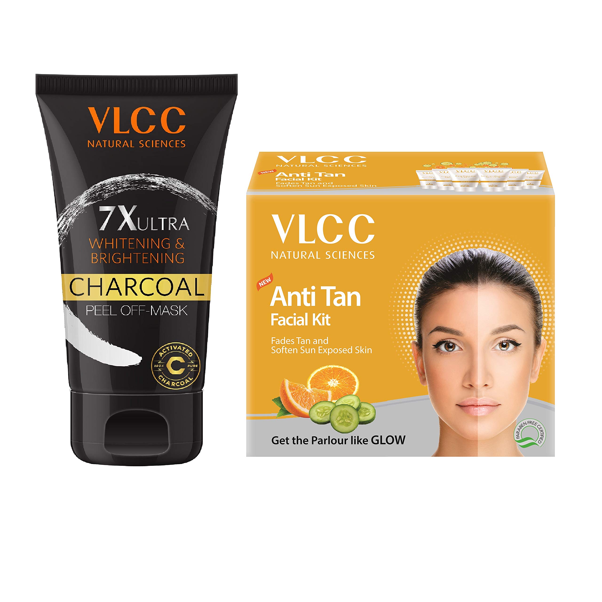 VLCC 7x Ultra Charcoal Peel Off Mask (100g) & Vlcc Anti Tan Single Facial Kit (60g), 2 Pieces