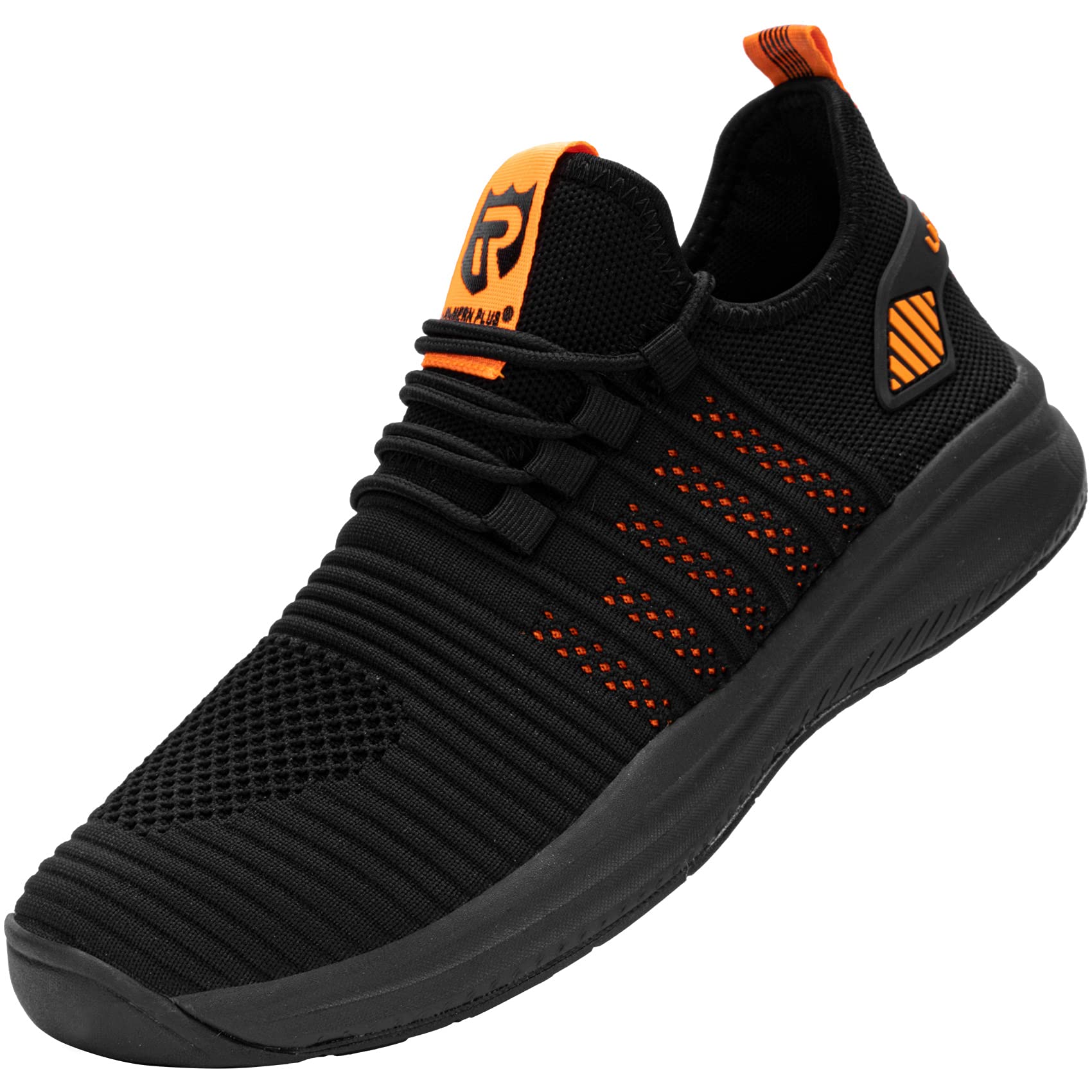 LARNMERN PLUS Womens 2E Wide Toe Trail Running Shoes Waterproof Non Slip Basic Cross-Country Shoes for Jogging Hiking Camping (Black Orange, 10)