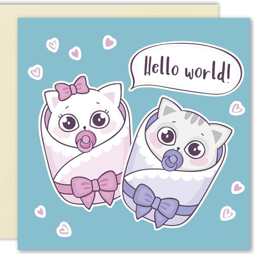 Cult Kitty - Hello World Sweet New Baby Card - New Baby Boy Card - Congrats Card for Couple - Congratulations Card to New Parents - Newborn Baby Arrival Card