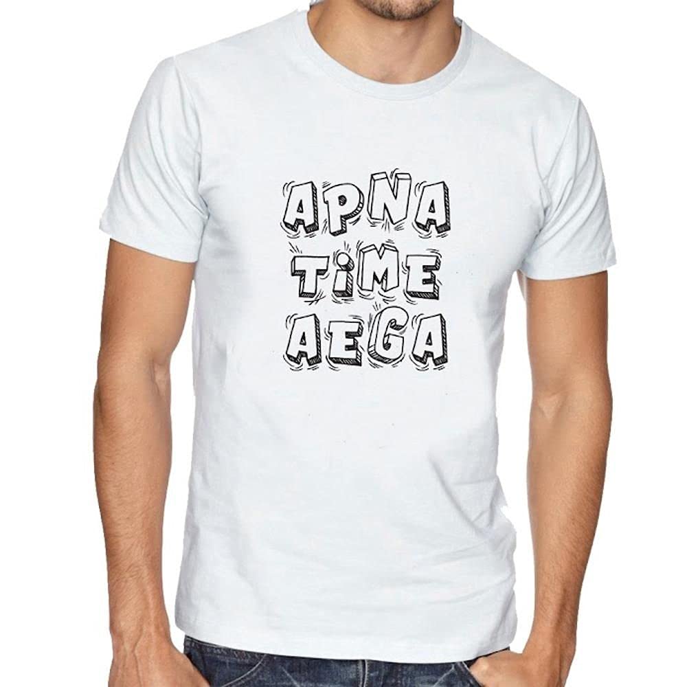 LIMIT Fashion Store - Apna Time Aega Printed Unisex T-Shirt (Medium, White)
