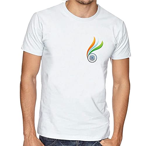 LIMIT Fashion Store - India Flag Wheel Pocket Design Printed Unisex T-Shirt White (XX-Large)
