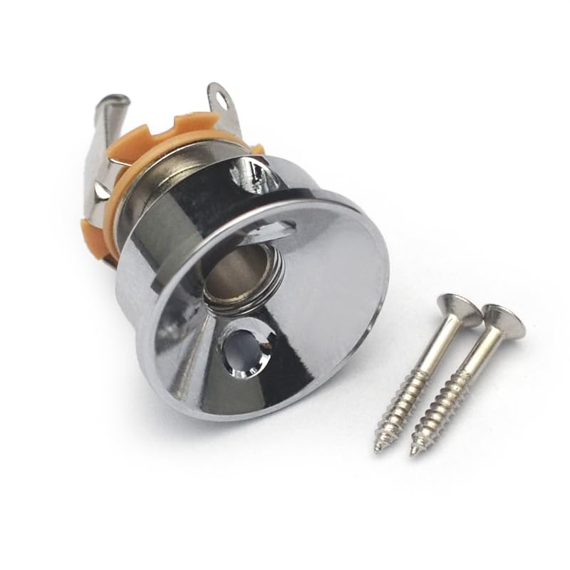 ♫ A chrome plated recessed telecaster jack electro-socket assembly for an electric guitar.