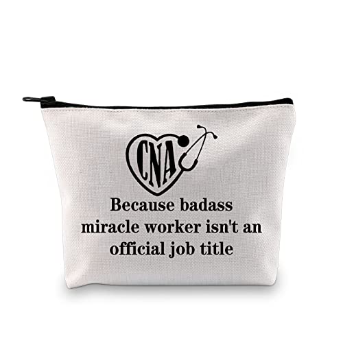 The Makeup Bag with words:CNA - Because badass miracle worker isn't an official job title, perfect for yourself or a friend who needs a little encouragement or reassurance.