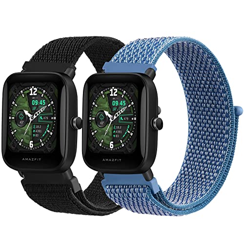 new | 2 Pack Nylon Bands for Amazfit GTS,GTS2,GTS 2e,GTS 2 mini, 20mm Quick Release Soft Breathable Sport Replacement Watch Strap for Amazfit Bip U Pro/Bip/Bip Lite/Bip S/Bip S lite/Bip U (Black+Cape Blue)