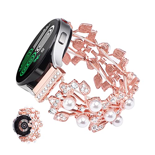 Watch Band Compatible for Samsung Galaxy Watch 4 40mm 44mm / Active 2 / Galaxy Watch 42mm / Galaxy Watch 3 41mm, 20mm Bling Smart Watch Stretch Solo Loop Bracelet Strap for Women, Pink