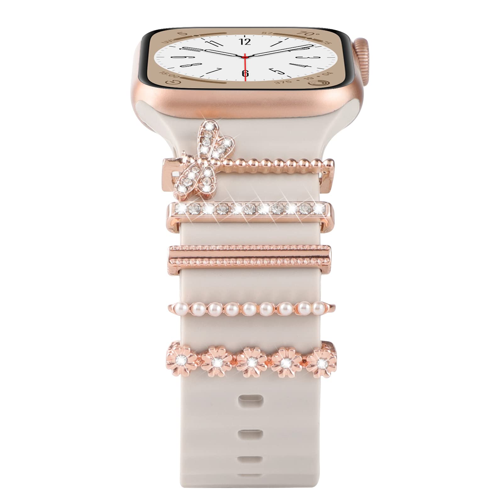 Charms Decorative Rings Loops Compatible with Apple Watch Bands 38mm 40mm 41mm 42mm 44mm 45mm, Sparkles Metal Diamond Ornament Silicone Watchband Accessories for iwatch Bands (Dragonfly Rose Gold)