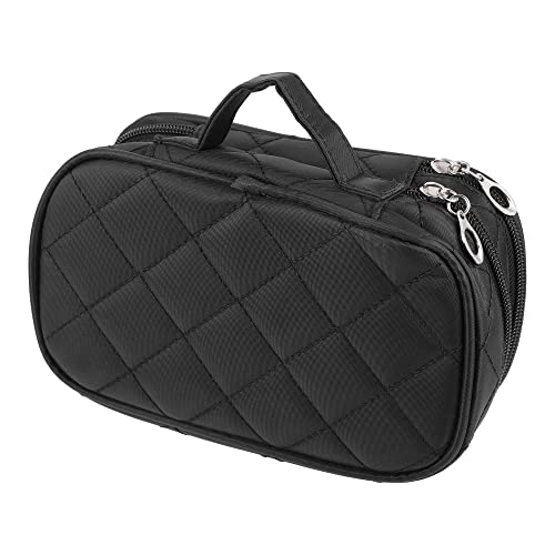 VOCOSTE 1 Pcs Travel Double Layer Makeup Bag, Makeup Brush Holder, Makeup Organizer Bag, Cosmetics Storage Bag, Portable, Waterproof, Black