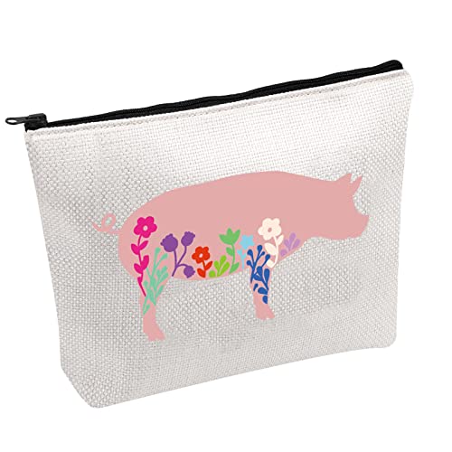 Floral Pig Makeup Bag Farmhouse Pig Bag Pig Lover Survival Kit Animal Lover Zipper Pouch Pig Owner Makeup Bag Pig Mom Gift (Floral Pig)