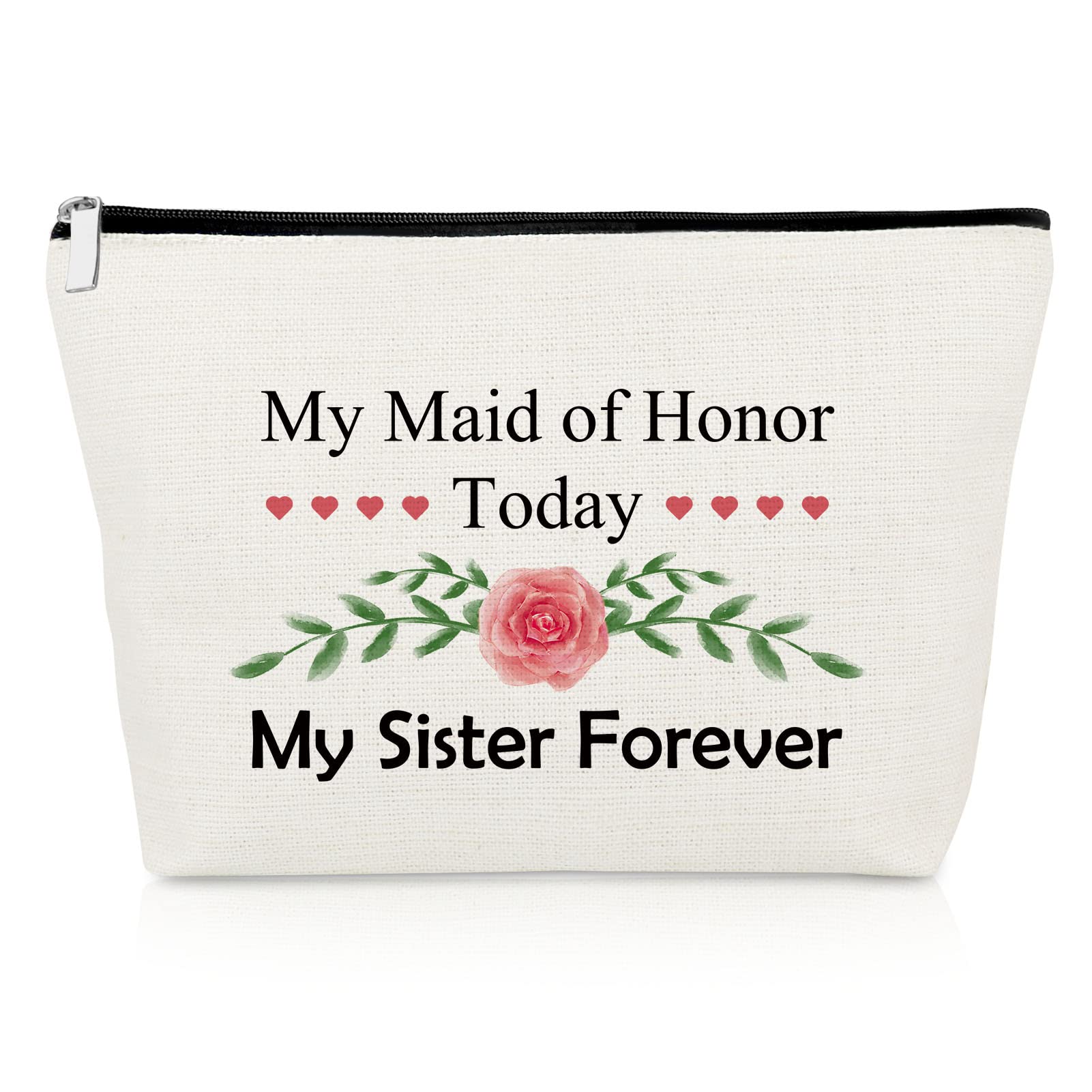 Sister Maid of Honor Proposal Gifts Makeup Bag Sister Bridesmaid Gift Matron of Honor Gifts Sister Friendship Gifts Cosmetic Pouch Wedding Bridal Shower Gifts Engagement Gift Bridesmaid Cosmetic Bag