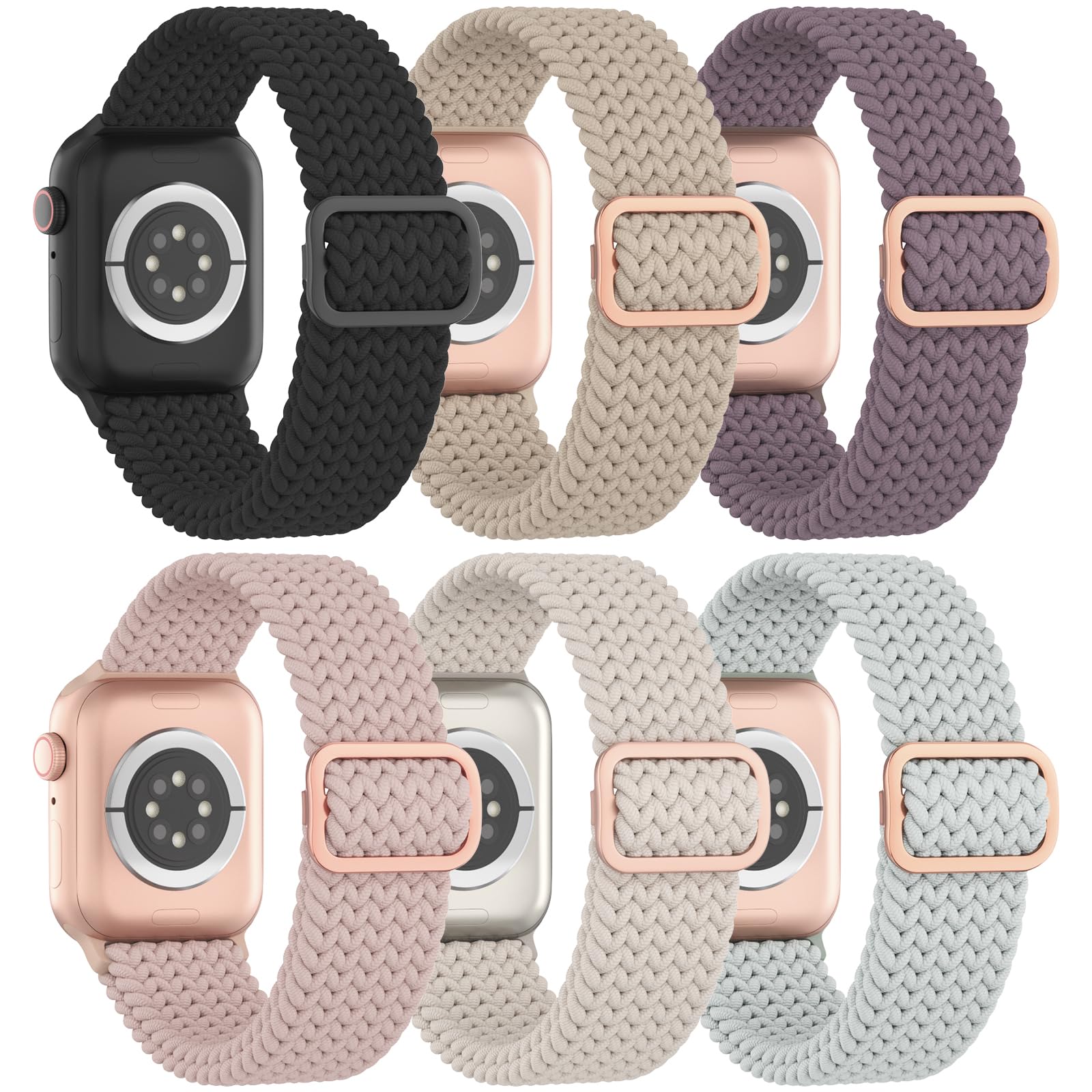 Compatible Models: TRA 6 Pack Adjustable Elastic Nylon Solo Loop Watch Band Compatible with Apple Watch Band 38mm 40mm 41mm 42mm 44mm 45mm 49mm, Soft Stretchy Nylon Braided Strap Wristbands for iWatch Ultra Series 8/SE/7/6/5/4/3/2/1 Men Women.