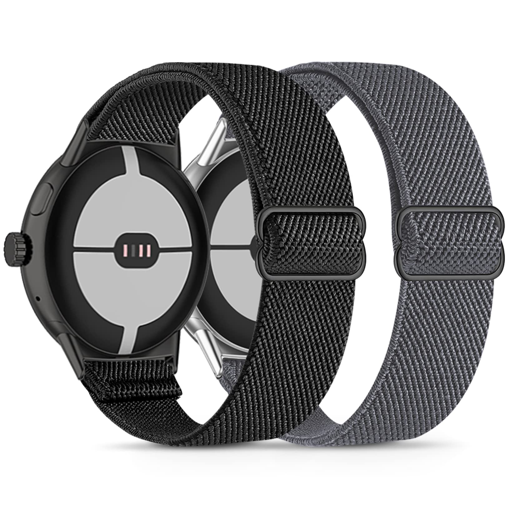 new|Laband 2 Pack Stretchy Nylon Compatible with Google Pixel Watch Band for Women Men, Elastic Soft Braided Sport Bands Accessories Strap Replacement for Google Pixel Watch(Black/Deep Gray)