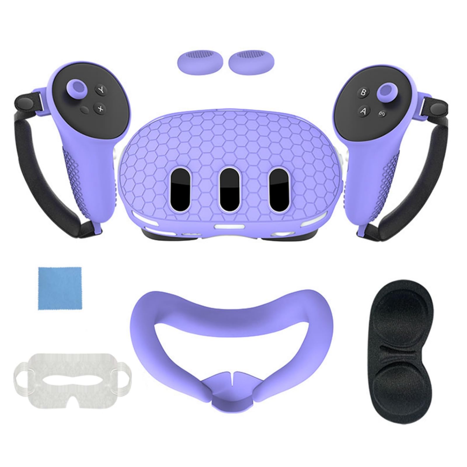 new|7 in 1 Protective Cover Set Compatible with Meta Quest 3, Anti-Slip Silicone Cover for Quest 3 Accessories Headset Shell Cover, Face Cover, Controller Grip Cover & Lens Cover (Purple)