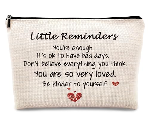 new|kdqua Mental Health Gift Makeup Bag, Inspirational Gifts Little Reminders You are Enough Linen Cosmetic Bag Zipper Pouch Travel Toiletry Bag, Positive Gifts for Women Girls Friends Coworkers