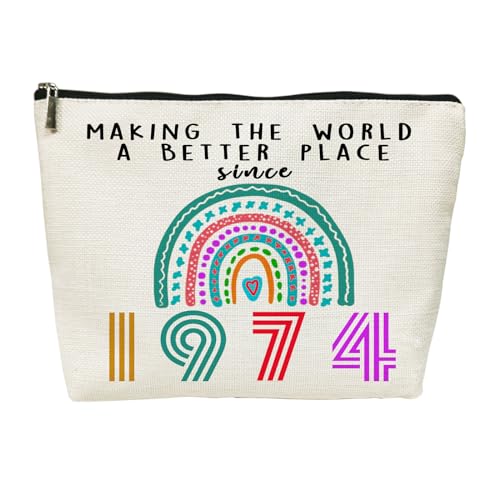 1974 Birthday Cosmetic Bags: Bag Making the World a Better Place Since 1974. Your birthday girl or guy will just love the personal touch with their birth year, such a thoughtful gift